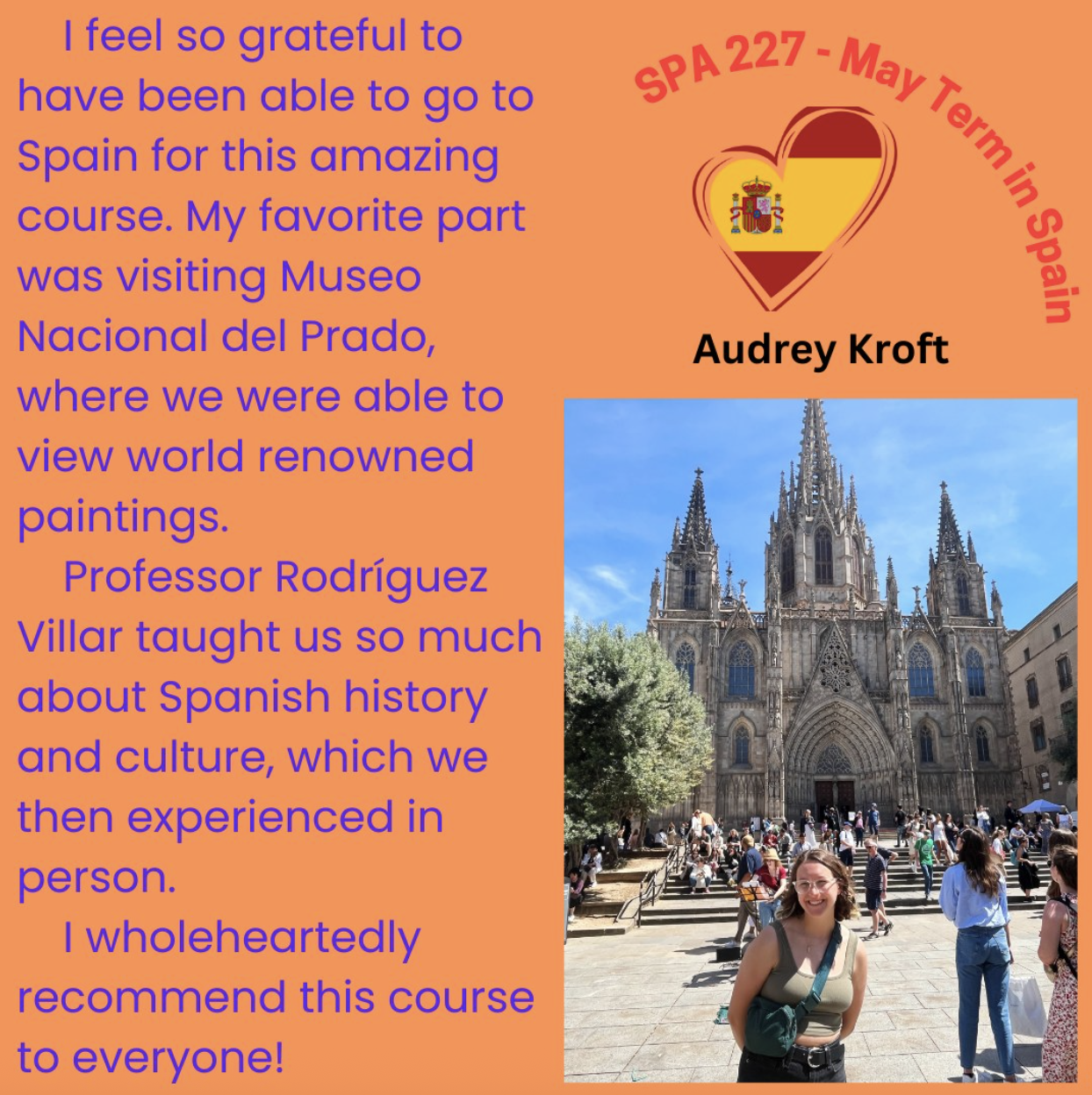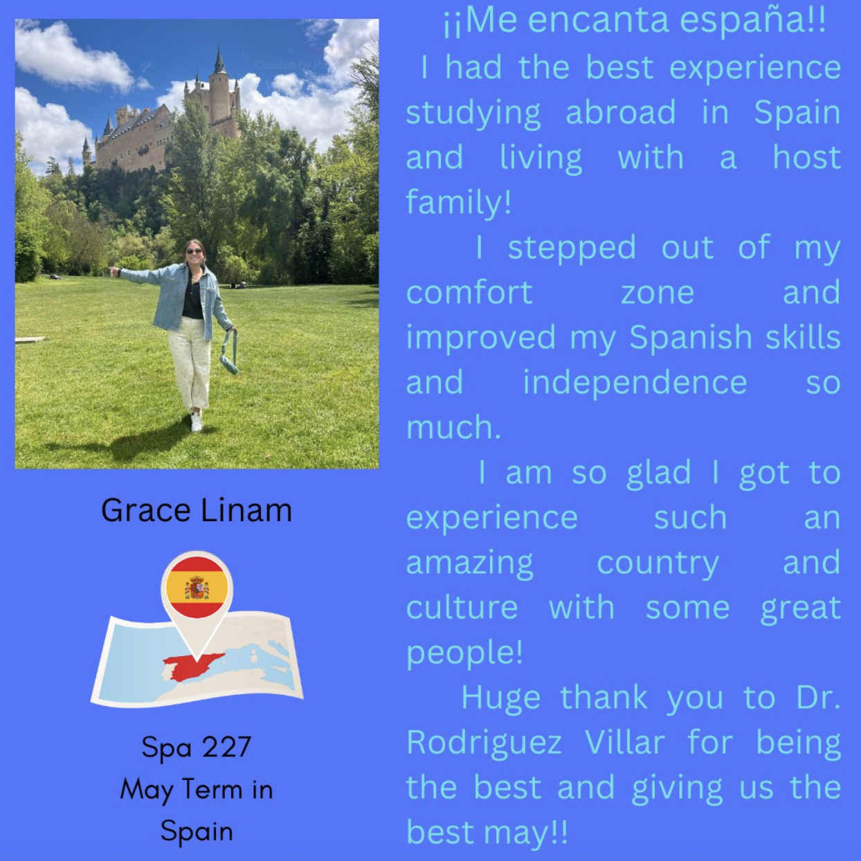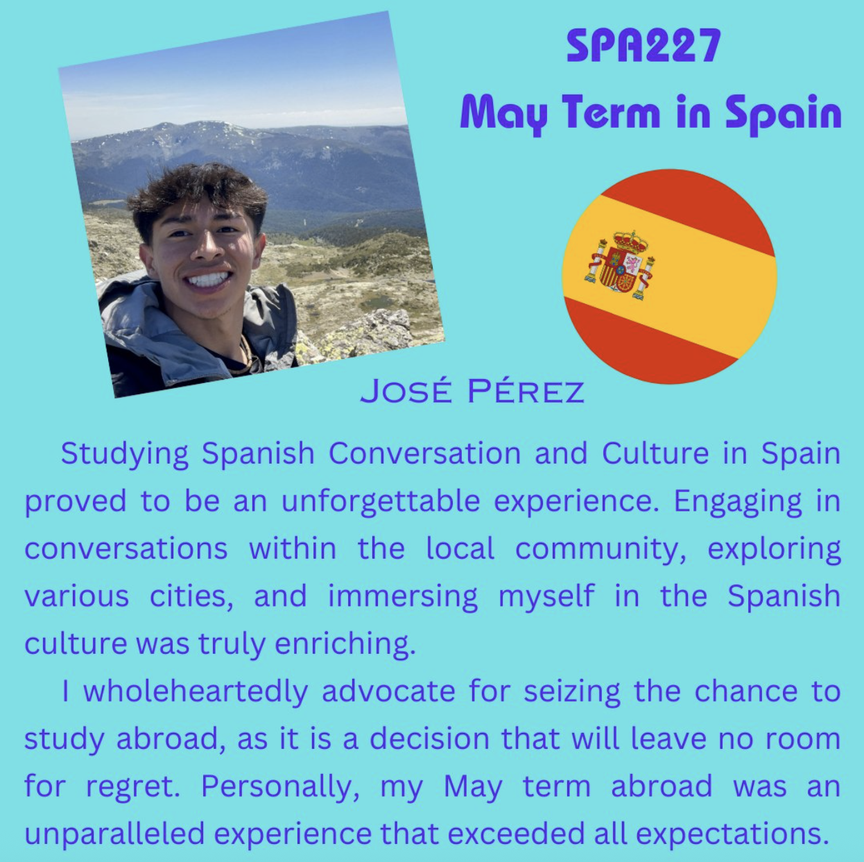 The Spanish Program offers a May Term course (SPA 229) that alternates between two Spain-based experiences.